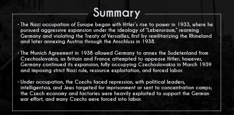 The occupation was marked by the imposition of strict Nazi rule, with the Czech government being replaced by a German-appointed protectorate government.