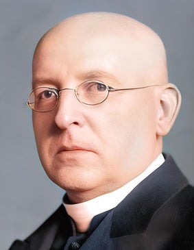 The Treaty of Versailles: French Premier Clemenceau addressing the German Delegates prior to delivering the peace treaty at the Trianon Palace Hotel, Versailles, France. 1919.