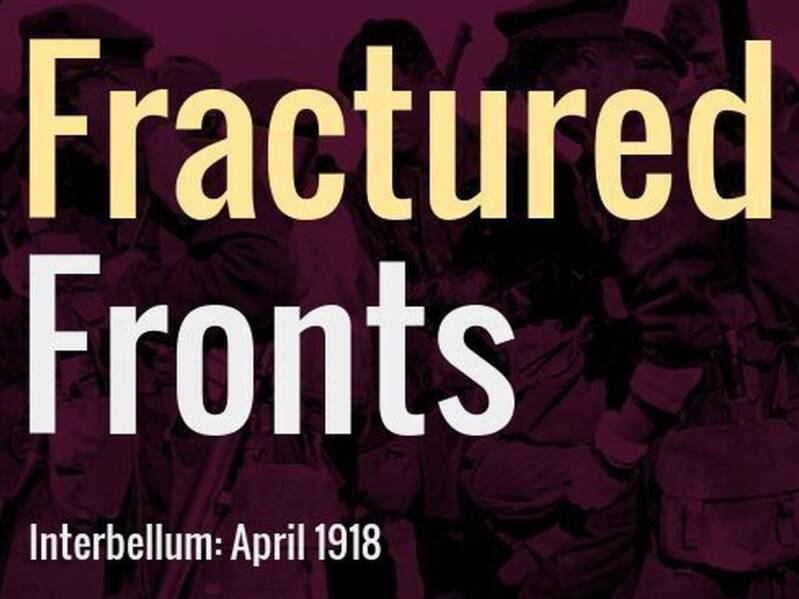 Troops standing in the shell of a building. By April 1918, the First World War had reached a critical point with Germany's Spring Offensive straining Allied forces on the Western Front, while the collapse of empires and rising nationalist movements across Europe and beyond fueled widespread political instability.