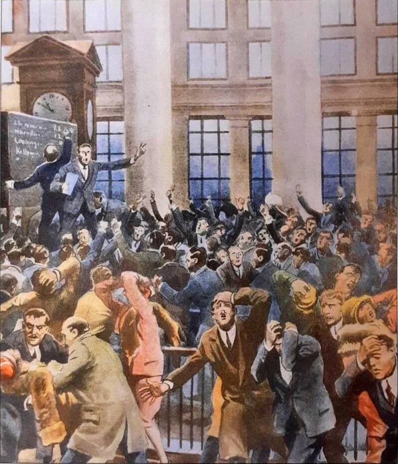 Contemporary painting capturing the drama of the Wall Street Crash.