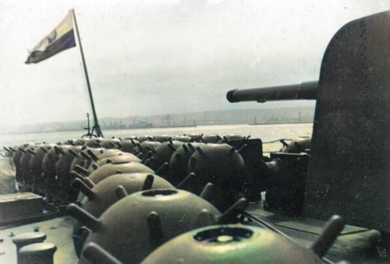 Mines and120mm Bofors gun at the stern ORP Gryf.