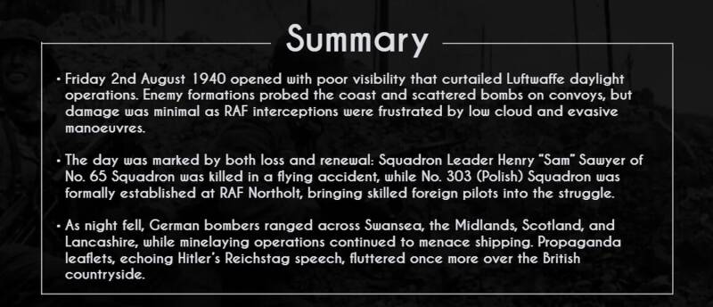 The Luftwaffe tested, probed, and pressed, keeping Fighter Command vigilant, while Britain’s skies remained a perilous theatre, where even reconnaissance carried deadly risk.