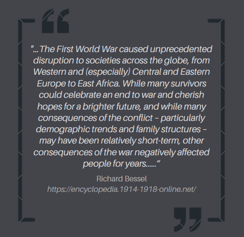 It was a time of great change and upheaval as the world, and Europe in particular, struggled to recover from devastating effects of the First World War, in which millions had died and enormous destruction had occurred.