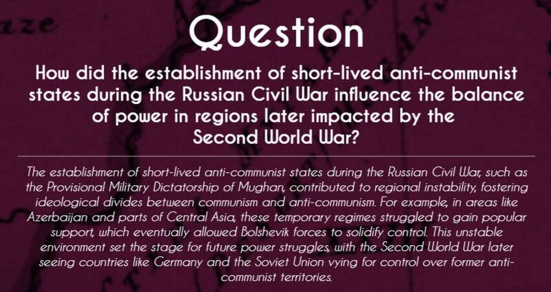 'Ephemeral States of the Russian Civil War - this outstanding map demonstrates the widespread instability of Russia during the Civil War.' The Provisional Military Dictatorship of Mughan exemplified the transient states that emerged during the Russian Civil War, reflecting the region's fragmentation and ideological strife. Like many short-lived entities, it arose in response to local conditions, aligning with White Russian forces to oppose Bolshevism. Its brief existence, from August 1918 until Bolshevik forces reclaimed the region in early 1920, highlighted the instability and competing power struggles that characterized much of the Russian Empire during this turbulent period.