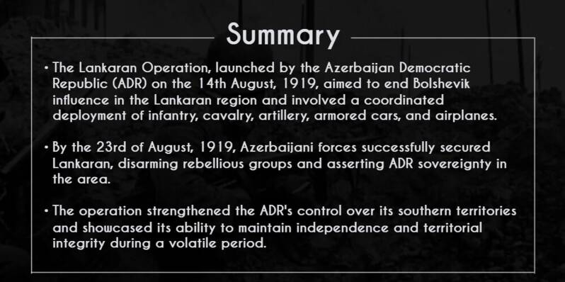 This swift and decisive action effectively ended Bolshevik control in the region, restoring stability and asserting the sovereignty of the ADR over Lankaran.