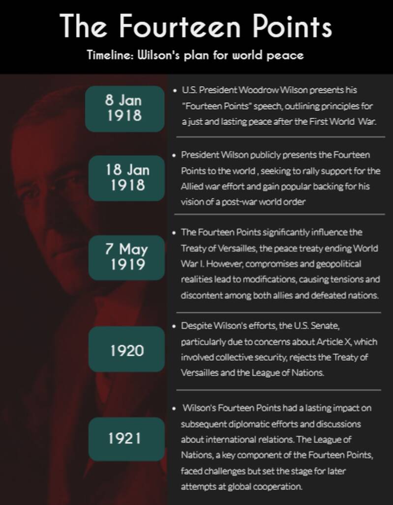 Later, Wilson based his negotiations for the Treaty of Versailles, which put an end to the war, on the Fourteen Points.