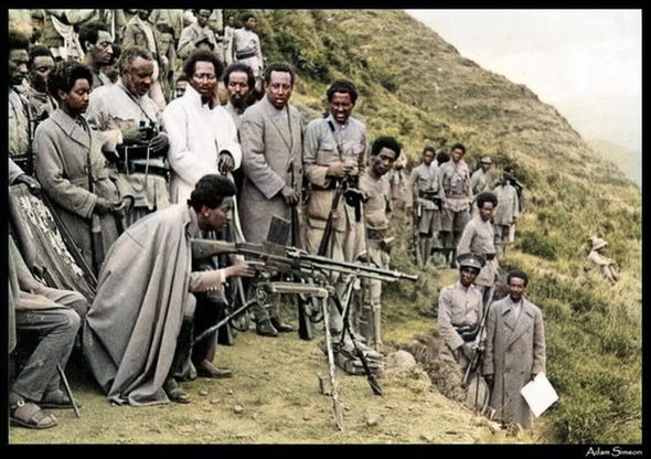 Ethiopian troops testing a machine gun during the Second Italo-Ethiopian war.