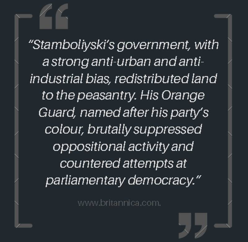Stamboliyski aligned himself the Bulgarian Communist Party and forged links with Soviet Russia.