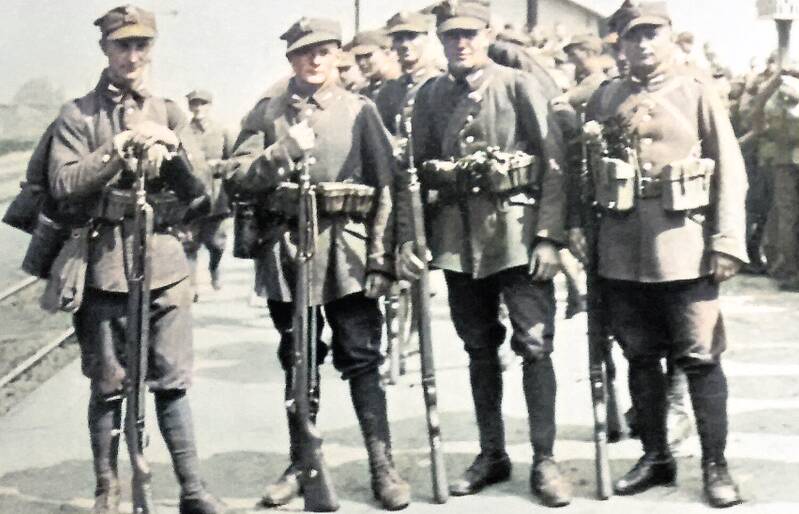 Soldiers of the SECOND platoon of the National Defense Company "Mikołów" at the railway station in Mikołów. Identical uniforms and equipment were possessed by soldiers of the 201st Infantry Regiment, which included BON "Sosnowiec", "Zawiercie" and "Katowice".
