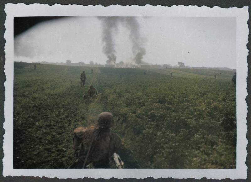 In the interim the infantry (SS Reg. Deutschland) had pushed forward as far as the line of block-houses. The Corps (I AK) had attached the tank regiment of our division (Pz Reg 7) to the division on our left (ID 11). This regiment attacked in the area south of Kuklin as far as the tank barriers.
