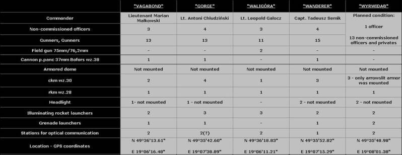 In total, the four bunkers were manned by 70 soldiers from the 151st Fortress Company “Węgierska Górka"and were commanded by a Captain Tadeusz Semik. They were supported a Border Defence Corps battalion “Berezwecz”, who were led by a Major Kazimier Czarkowski. The Poles had two batteries of light artillery from the 55th Light Artillery Regiment and one battery of artillery from the Polish 1st Mountain Brigade. Additionally, other Polish units also reinforced the defences, including two platoons of the "Żywiec" National Defence battalion and a unit from the Border Guard. In total, the Polish defenders numbered around 1,200 men.