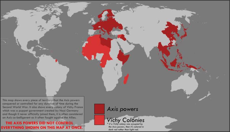 Every territory the Axis powers(including co-belligerents) occupied/controlled for any duration of time during the Second World War.