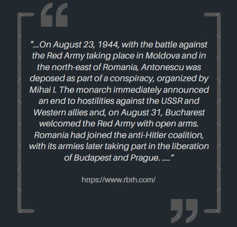 By 1944, as the Soviet forces advanced, Romania switched sides on August 23, 1944, joining the Allies and fighting against Germany until the end of the war.