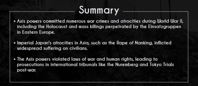 Throughout World War II, the Axis powers perpetrated numerous war crimes and atrocities that shocked the world and left a lasting scar on human history.