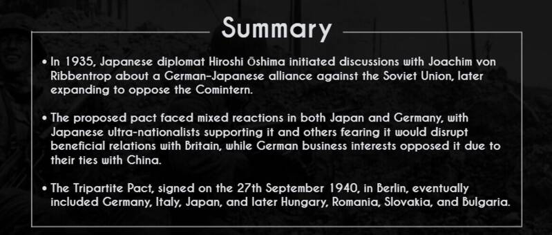 In November 1936, Germany and Japan ratified the Anti-Comintern Pact, an anti-communist treaty, with Italy joining in 1937, followed by Hungary and Spain in 1939.