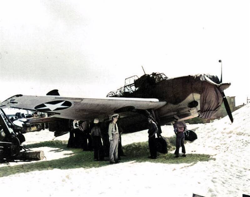 Midway-based Douglas SBD Dauntless, photographed in Midway Islands area a few days before the battle.