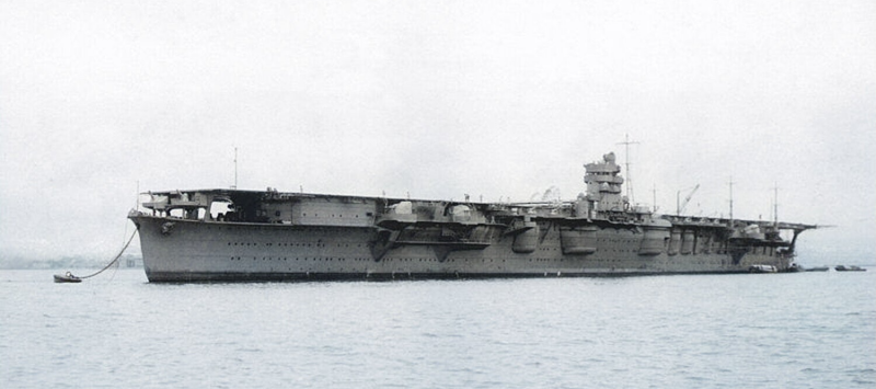 Hiryū at anchor in Yokosuka, shortly after completion in 1939. Hiryū had a designed aircraft capacity of 64, plus nine spares.