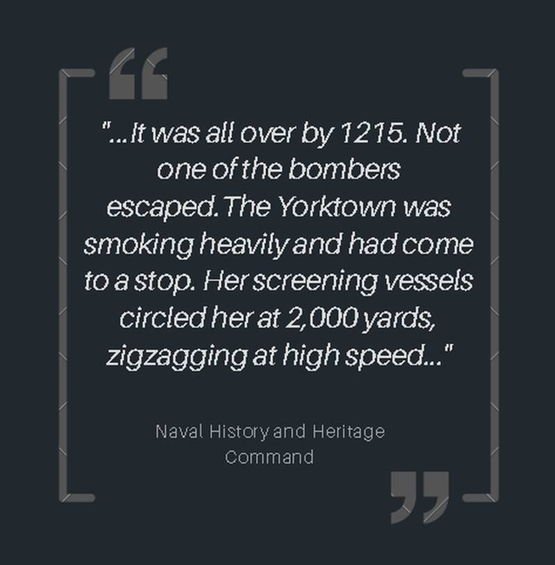 The Devastators of the Yorktown held a special status since they were the only torpedo squadron to engage in combat with a fighter escort. The slow-moving Devastators were joined by a dozen Yorktown-based Grumman F4F Wildcats, and the Japanese combat air patrol reacted instantly. They unknowingly made room for a new threat as they descended to a level close to sea level to intercept the American fighters.