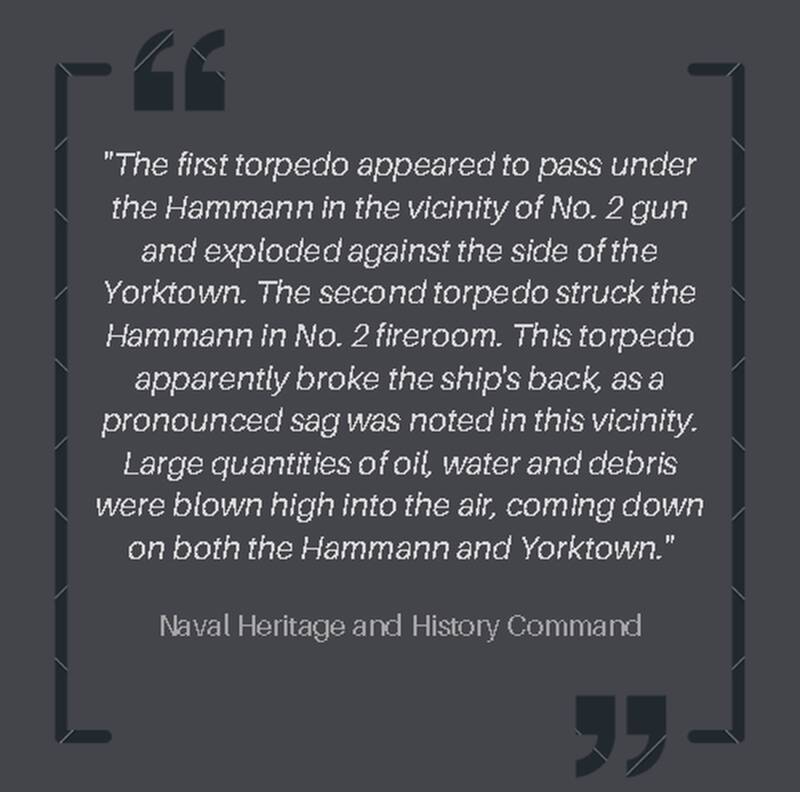 Explosions quickly shook both the Hammann and the Yorktown after the Japanese submarine I-168 sneaked up on the recovery effort.