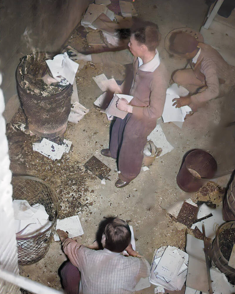Unidentified attaches of the Japanese consulate began burning papers, ledgers and other records shortly after Japan went to war against the U.S., 7th Dec. 1941, in New Orleans. Police later stopped the fire after most of the papers had been destroyed.