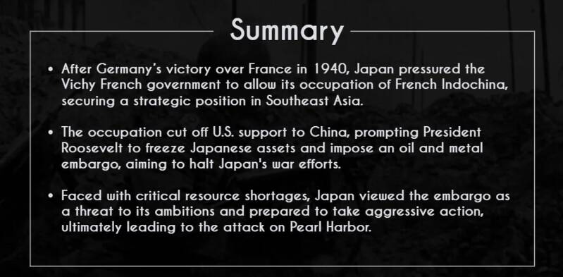 This occupation gave Japan a strategic foothold in Southeast Asia, allowing it to deploy aircraft and establish bases that directly threatened Southern China.