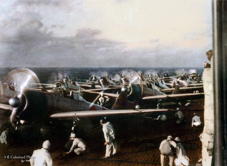 The force was led by Lieutenant Commander Egusa Takeshige from Soryu who was considered to be the finest dive bomber pilot in the Imperial Navy.
