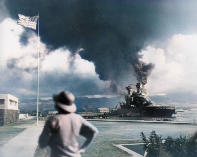 Other ships like the USS Tennessee and USS Maryland, moored next to already sunken vessels like the West Virginia and Oklahoma, were also struck by bombs.