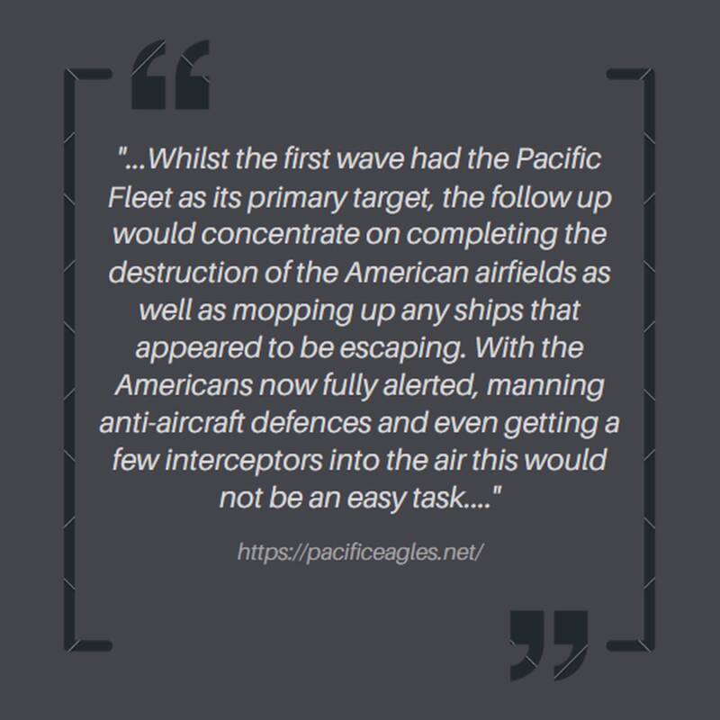 Despite this, the second wave still delivered a devastating blow, focusing on finishing off warships and airfields that had escaped the first wave relatively unscathed.
