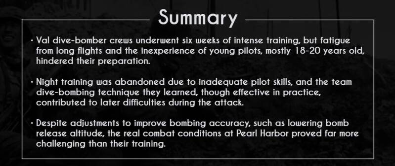 A critical part of their training involved learning the team dive-bombing technique unique to the Imperial Japanese Navy, a method that would later contribute to their shortcomings during the attack.