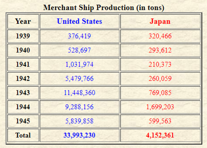 Although US and Japanese merchant ship production was on a similar level in 1939.
