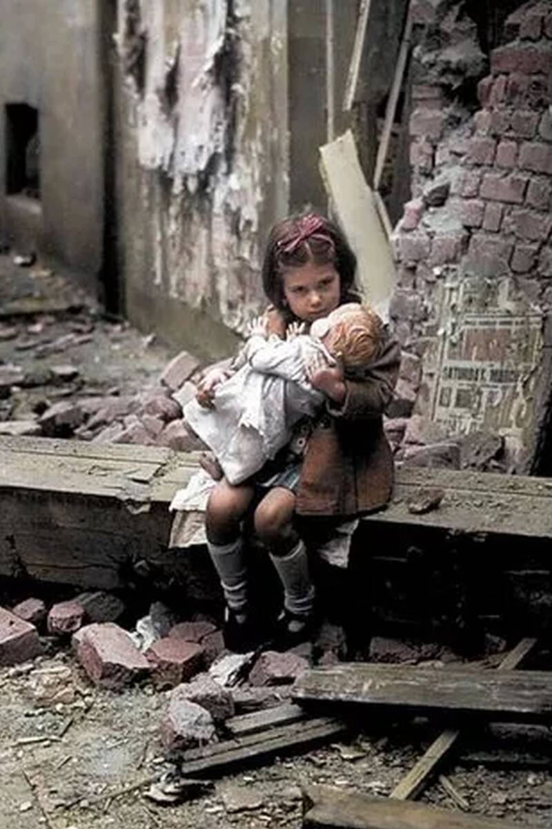 Photo by John Topham (for 'Life' magazine), this was his most famous image. It was used in a propaganda campaign alongside the slogan "Help England And It Won't Happen Here" which helped to convince millions of Americans to join the war against Nazi Germany.