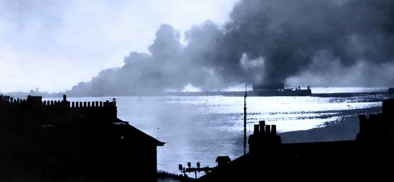 Despite this, the German bombers inflicted severe damage, igniting fires and scattering lifeboats across the water.