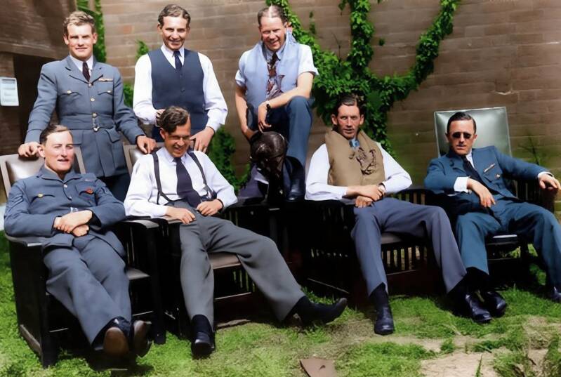 No 54 Squadron pilots pictured just before Dunkirk when 22-year-old Flight Lt. Basil ‘Wonky’ Way, third from left, was credited with two ‘probables’. On 25th July, he shot down a Me 109 before being shot down himself. He is remembered at the Battle of Britain Memorial.