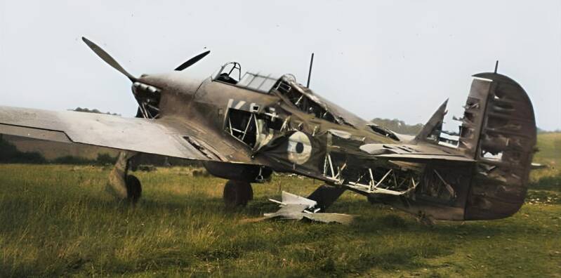 A damaged RAF Hurricane fighter after the Luftwaffe attack on RAF Kenley. While a number of Hurricanes from No. 111 Squadron were scrambled to meet the German attack on RAF Kenley, it was the aircraft on the ground that suffered the most. The low-level assault by the Dornier Do 17s was designed to destroy the fighters before they could get airborne. The raiders succeeded in destroying at least eight Hurricanes, a testament to the brutal effectiveness of the surprise assault. However, this came at a heavy cost to the Luftwaffe squadron.