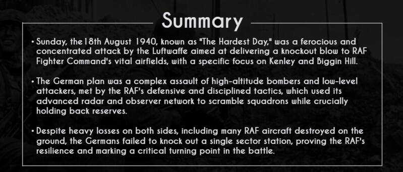 Sunday, August 18, 1940, earned its grim title, "The Hardest Day," from the sheer intensity of the air battles and the staggering losses on both sides.
