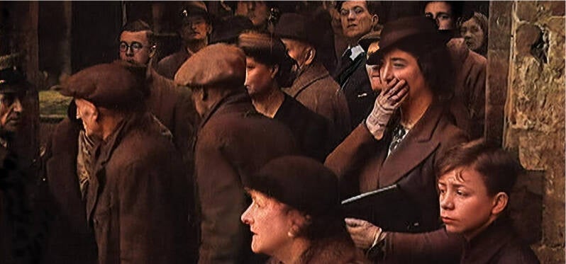People of Coventry wandered around in a daze taking in the destruction around them following the air raid of the 8th April 1941.