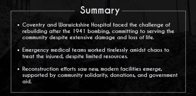 Following the devastating bombing of Coventry and Warwickshire Hospital in 1941, the medical facility faced the daunting task of rebuilding amidst the rubble and chaos of war-torn Coventry.