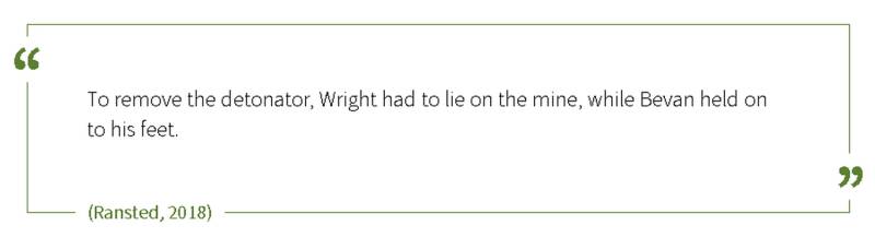 Wright climbed a perilous ladder and tethered himself to a beam so he could operate with both hands. Bevan held a torch for him while he cut through another beam blocking the mine's fuse.