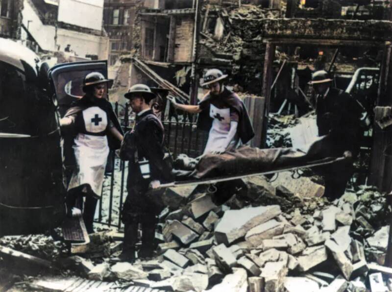 During the Blitz, rest centres were established across London to provide temporary shelter for those whose homes had been destroyed or damaged in the bombings. These centres, which were often located in schools, community halls, and other public buildings, offered basic amenities like food, water, and blankets to those in need.
