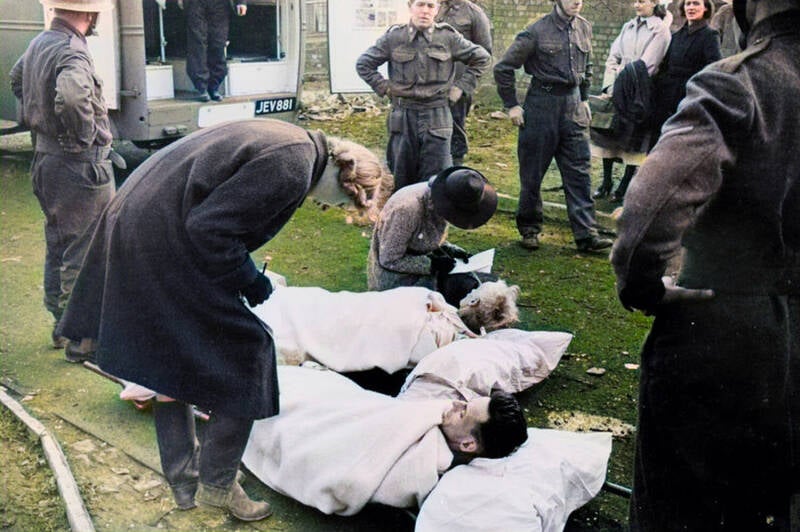 Civilians who were hurt by bombs were eligible for a government pension under laws hastily passed on the first day of the war, so long as they could prove that their injuries were the direct result of enemy action.