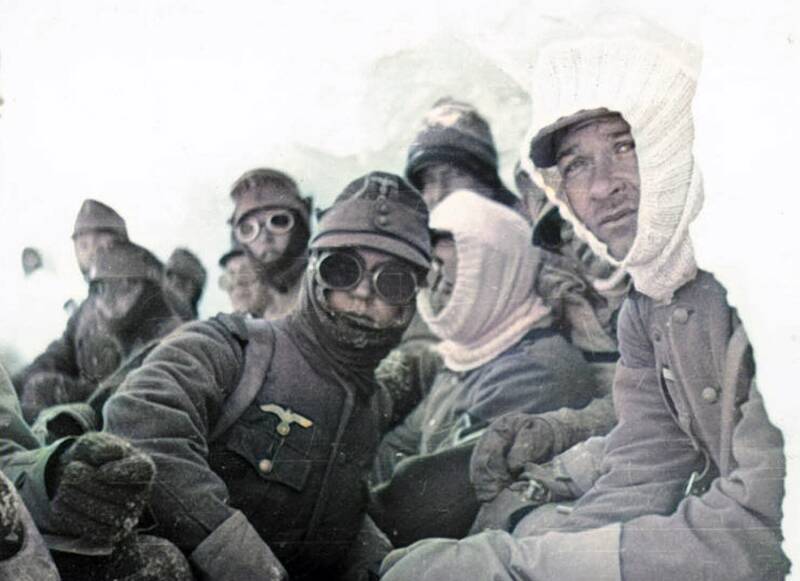 A group of German Gebirgsjägers (mountain troops) in action in Narvik, Norway, in 1940.